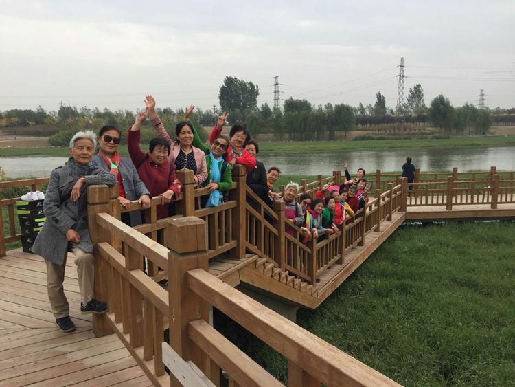 地里的野菊开着黄色的小花,在百花盛开的夏天没有人关注它们,万紫千红过后的秋天,它们就特别引人怜爱。学员们争先恐后的在这片地里留下了自己的身影。现在是枯水期,运河的水量不大,但是在城里住久了的人们,还是感到特别的欣喜。大家在小木桥上,同社区的管理员一起合影留念。拍照过后,有的在一起唱歌,有的在一边儿舞蹈。大家放松了心情,忘记了年龄,仿佛又回到了年轻的时候。