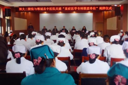 伴着初春的暖意,3月9日上午,郑大二附院与郸城县第二医疗健康服务集团郸城县中医院共建“重症医学专科联盟单位”揭牌仪式暨郸城县第二医疗健康服务集团郸城县中医院重症医学科正式开科仪式,在郸城县中医院新区行政楼六楼会议室隆重举行。郑大二附院重症医学科主任刘小军,郑大二附院重症医学科护士长李付华,郸城县卫计委党组书记、主任付登霄,郸城县卫计委副主任黄玉珍,郸城县第二医疗健康服务集团郸城县中医院副院长王海超,郸城县第二医疗健康服务集团郸城县中医院副院长于祖河出席仪式。仪式由郸城县卫计委副主任黄玉珍主持。