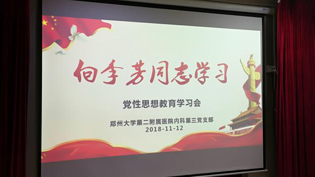 为深入贯彻落实党的十九大精神和习近平总书记在全国教育大会上重要讲话精神,根据郑大党文【2018】90号文件《关于深入开展“向李芳同志学习,争做‘四有’好老师”主题教育征文活动的通知》,郑州大学第二附属医院内科第三党支部积极响应,认真组织。