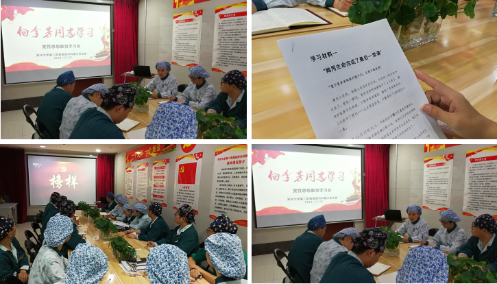 支部于文件下发的第一时间带领大家学习,在支部中掀起学习李芳精神的热潮。进一步弘扬高尚师德,学习她爱岗敬业、爱生如子的高尚师德;学习她心怀大我、无私奉献的至诚情怀;学习她为人师表、行为世范的品格风范;学习她奋不顾身、舍己救人的大爱精神。做有理想信念、有高尚情操、有扎实学识、有仁爱之心的“四有”好老师的先锋模范。学习的同时支部同志踊跃参与主题教育征文活动,真正将向李芳同志学习引向深入,落到实处。