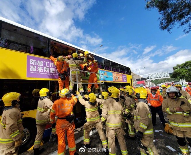 今天早上8点20左右,香港新界大榄隧道往汀九桥行驶方向两辆巴士相撞,造成77人受伤。其中一辆巴士车头严重损毁,司机及乘客被困。多辆救援车辆已到现场。目前事发地交通受阻,不少上班乘客正等待转车离开。大榄隧道是位于香港新界西的交通要道, 连接元朗与港九市区。(央视记者张成)
